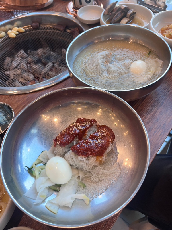 평일 낮에 고기먹으면 냉면이 1000원! 이므로 우리는 냉면을 또 시킨다.