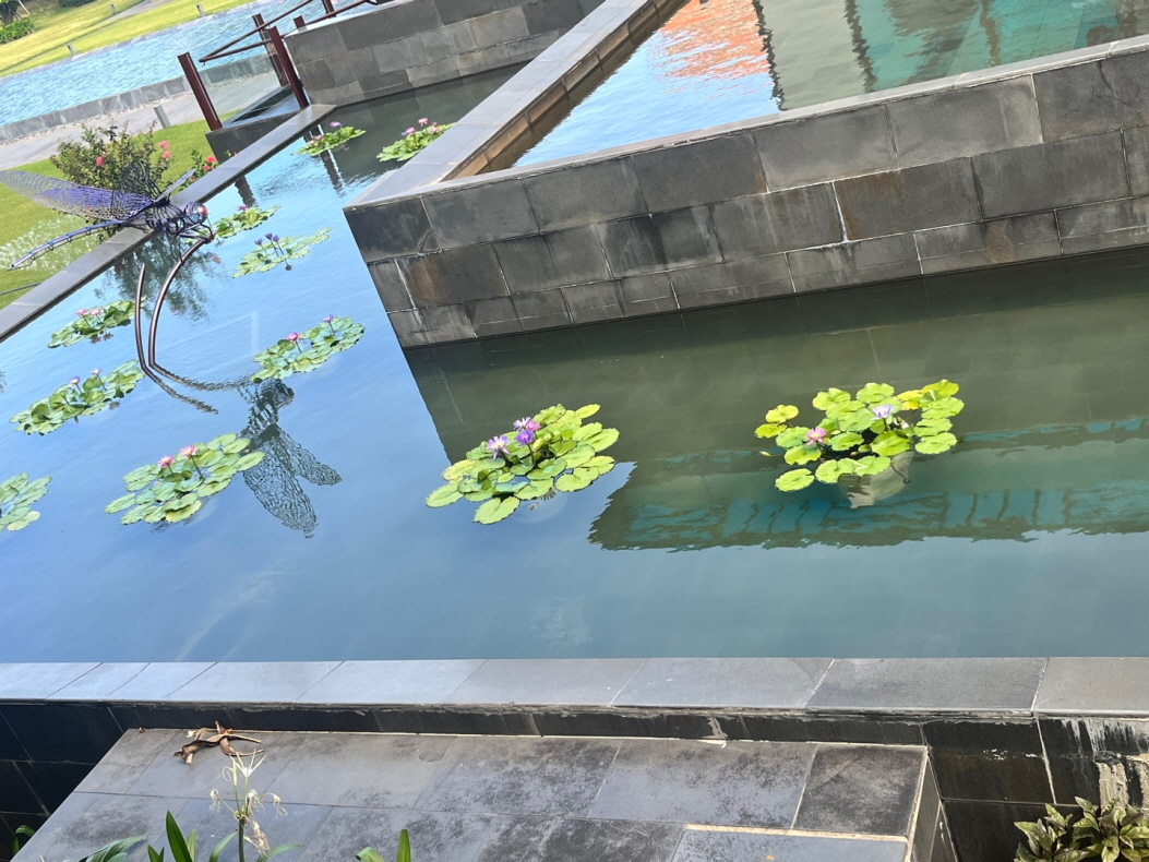 호텔 방으로 걸어가는 곳곳에 인공 연못과 연꽃