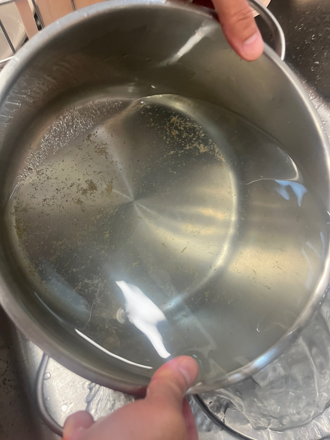 꺼내어보니 이물질이 많이 떠다닌다.