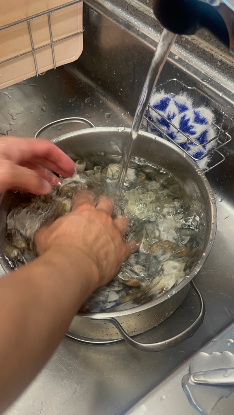 집에 와서 조개를 보니 얼추 조개가 이물질을 많이 뱉어두었다.