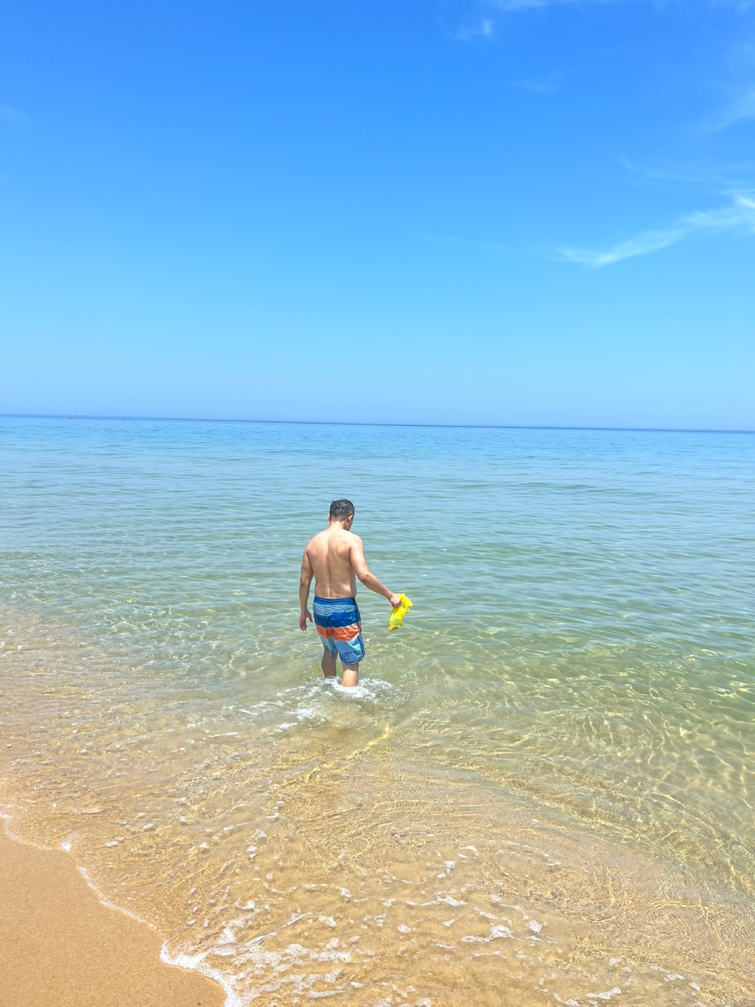 조금 더 들어가서 발로 모래 안까지 문질러 보면
