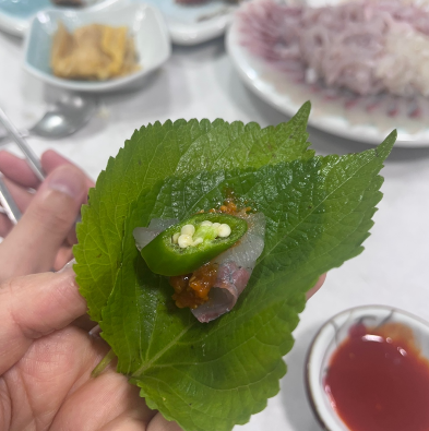 처음 먹는 회인데 맛있다.