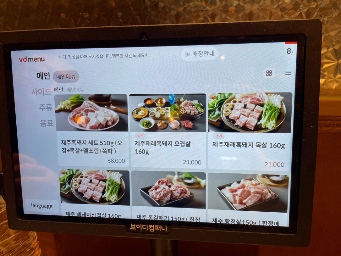 제주오겹살 목살 항정살 등등이 보이고