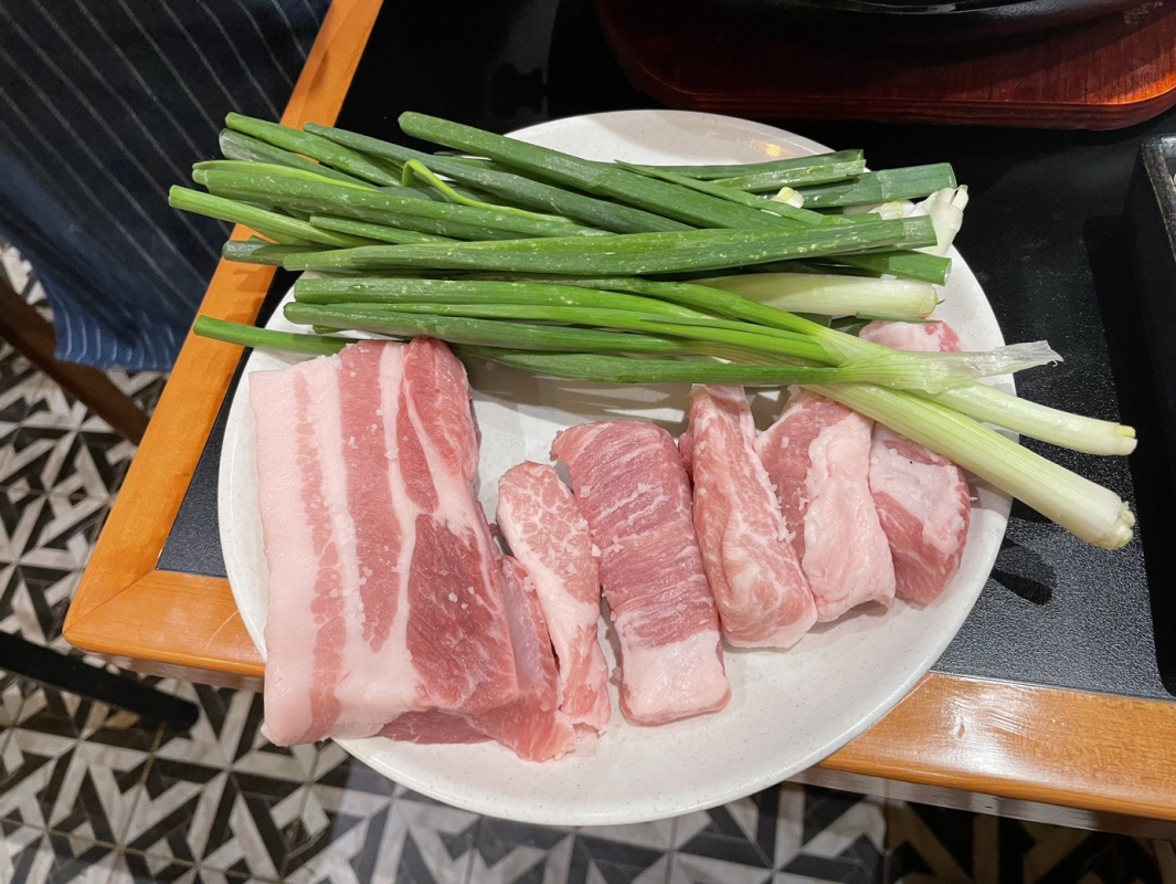 숯불에 구워주는 삼겹살 항정살 (둘이서 3인분 먹음)