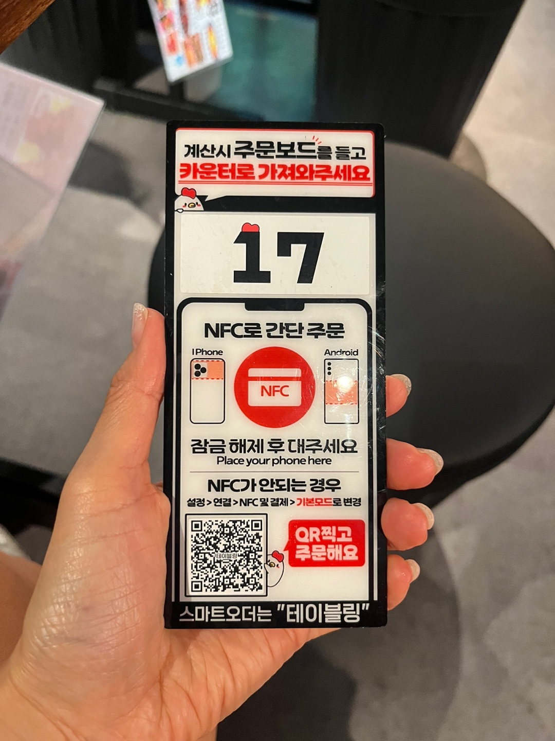 테이블에 있는 큐알을 연결하여 핸드폰으로 주문 하는 방식!