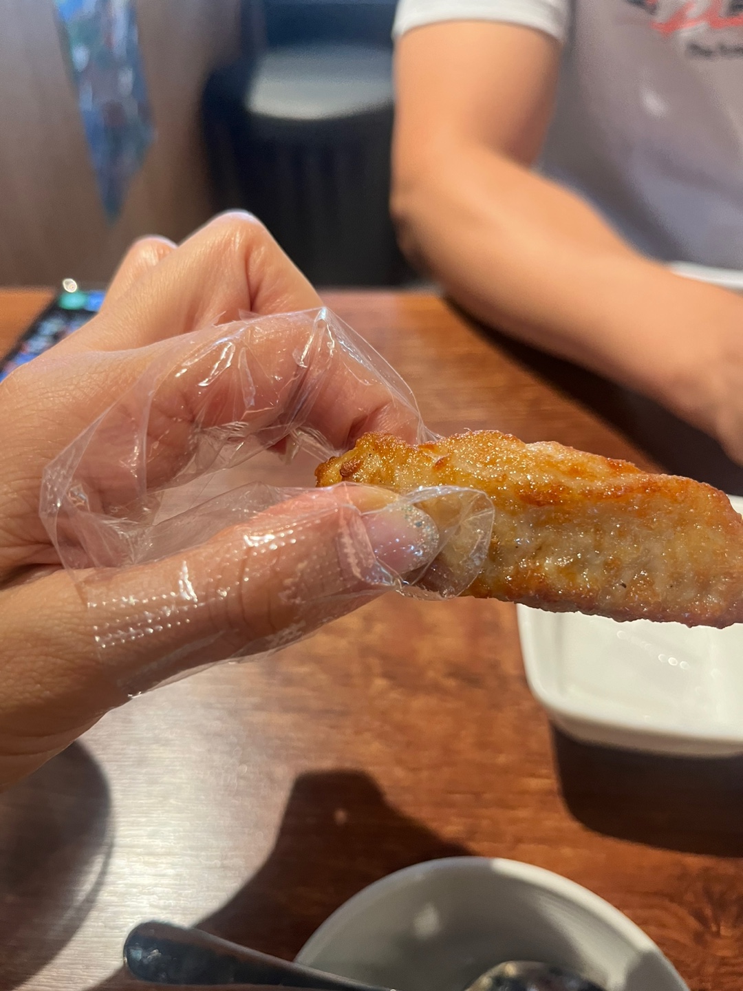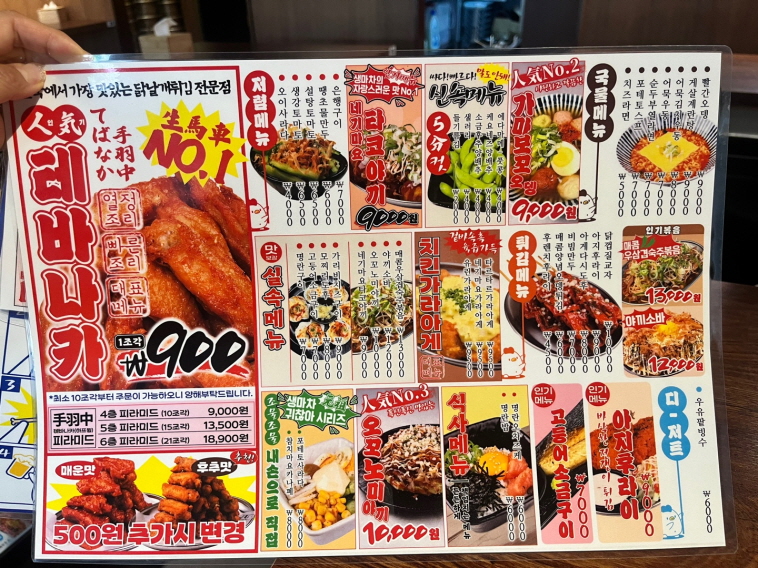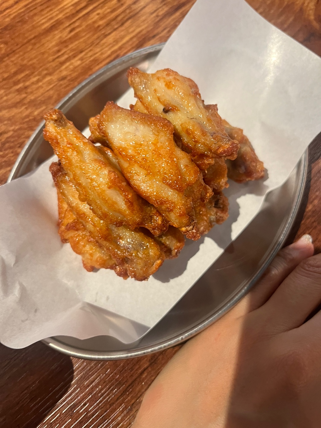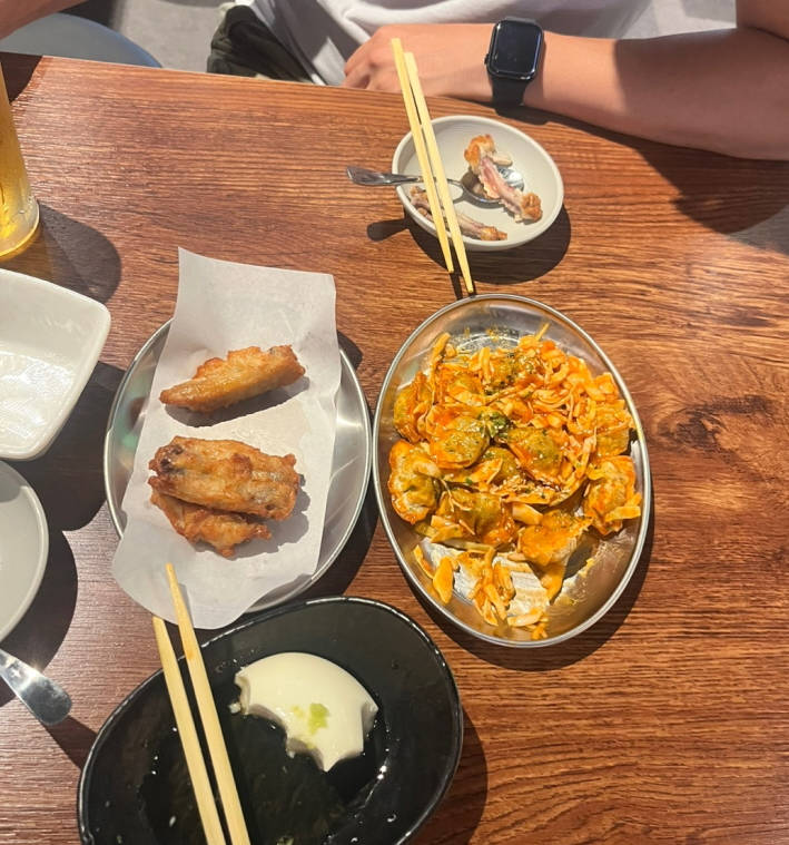 우리는 닭날개 10개짜리 와 모찌리도후, 비빔 만두 하나 주문!