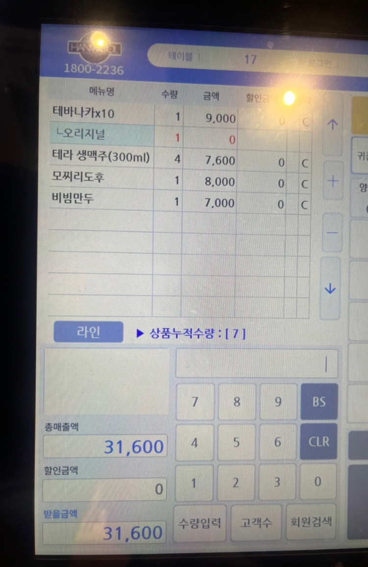 테이블 번호만 넣으면 결제할때에 한번에 나오니 편리함