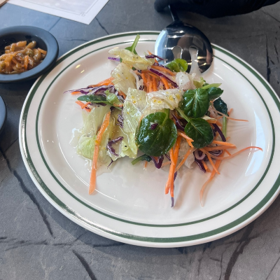 야채를 좋아하는 나는 샐러드를 조금만 더주면 좋겠다는 생각을 한다.