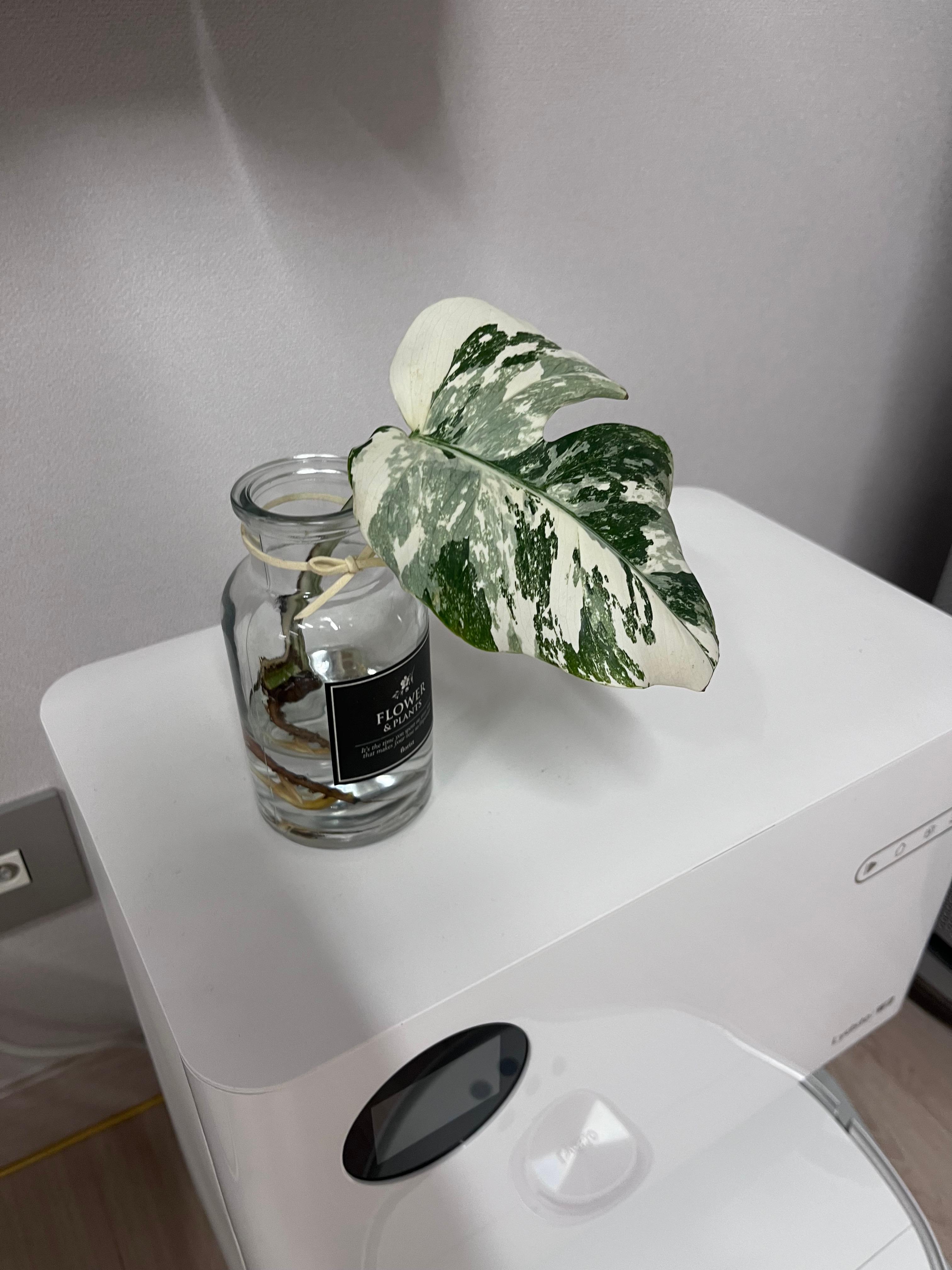 결혼 기념일 나를 위한 선물로 35,000원에 한 잎만 달린 몬스테라 알보를 구매했어요.