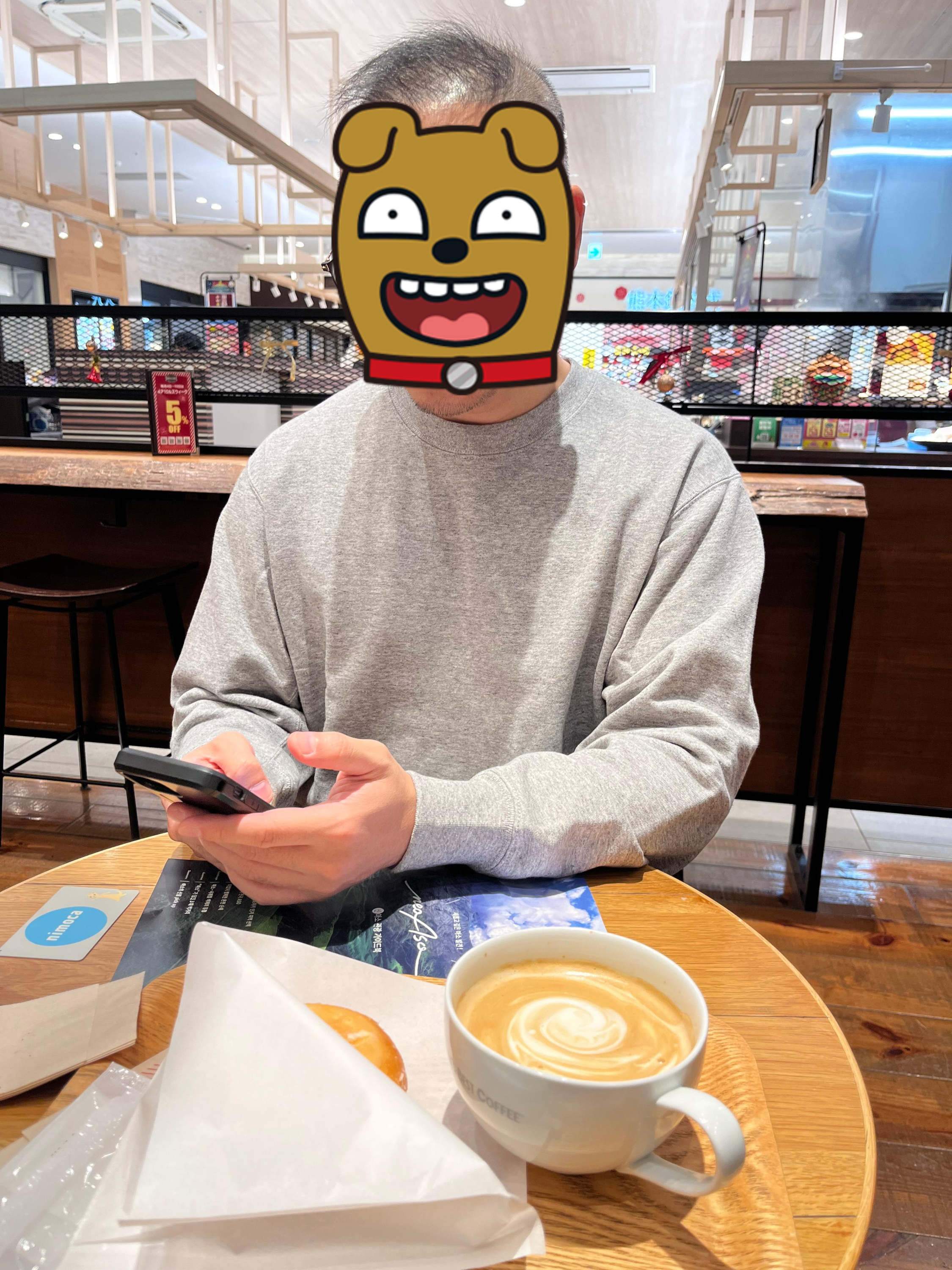 일단 히고오즈까지 가는 표를 사고 시간이 조금 남아(알고보니 남은것이었는데 그 전 차를 찼음) 몰 안의 커피숍에서 라떼한잔.