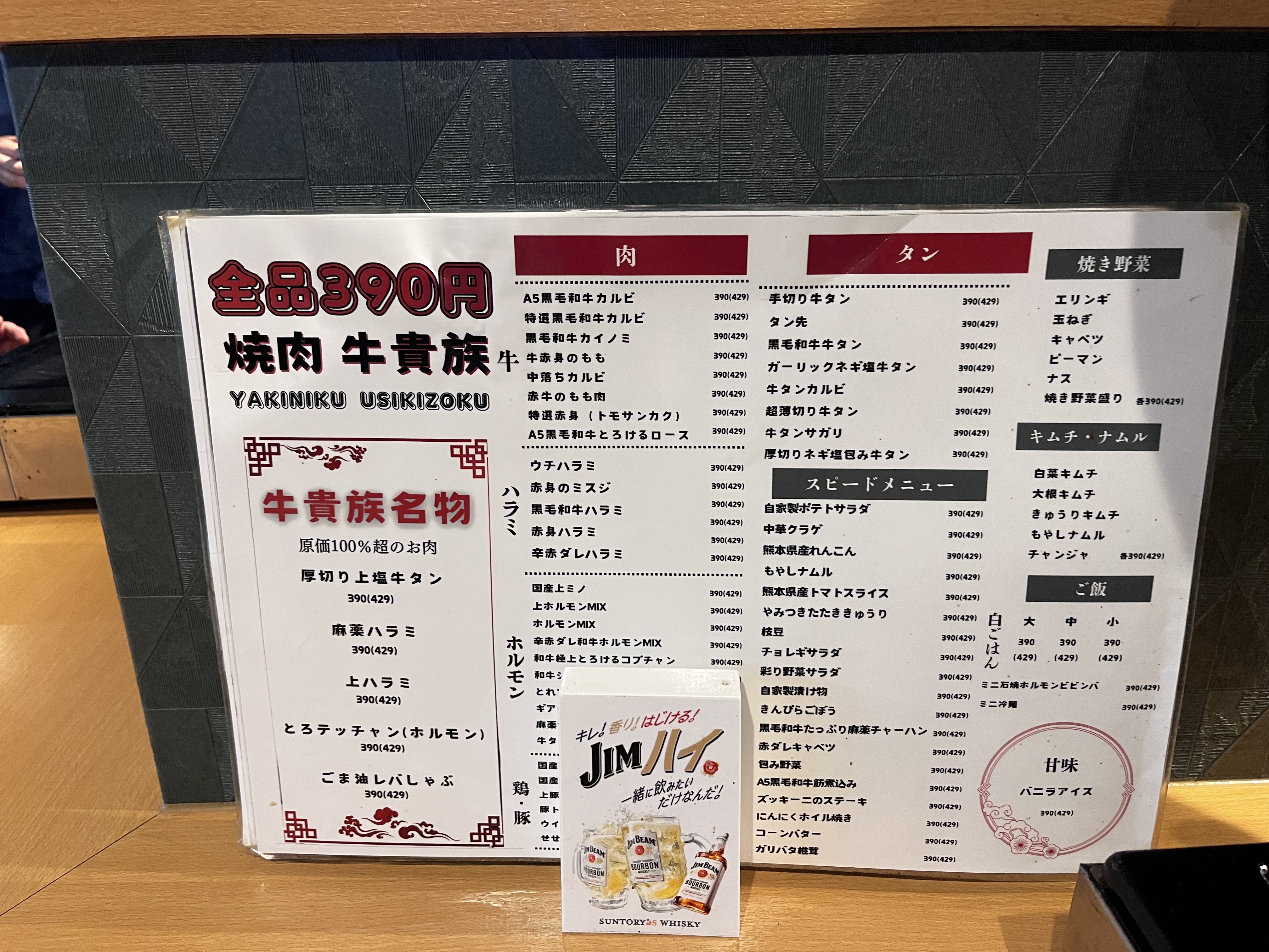 숙소근처 야키니쿠집 (고기집.) 야키니쿠 우시키조쿠