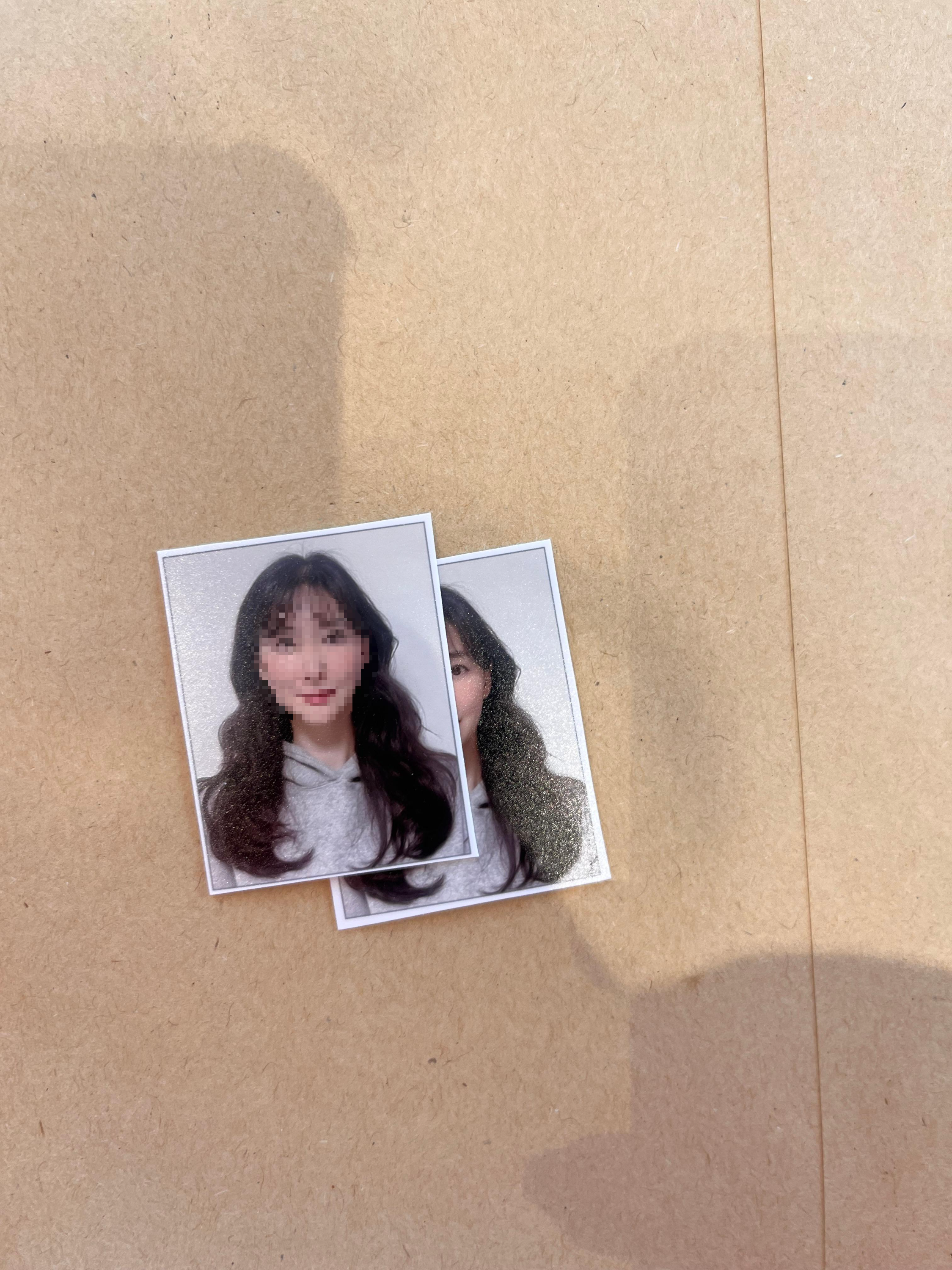 스노우로 셀카 잘 찍어서 스마일캣에서 여권사진, 일반 반명함판 두개 로 배송시킴.