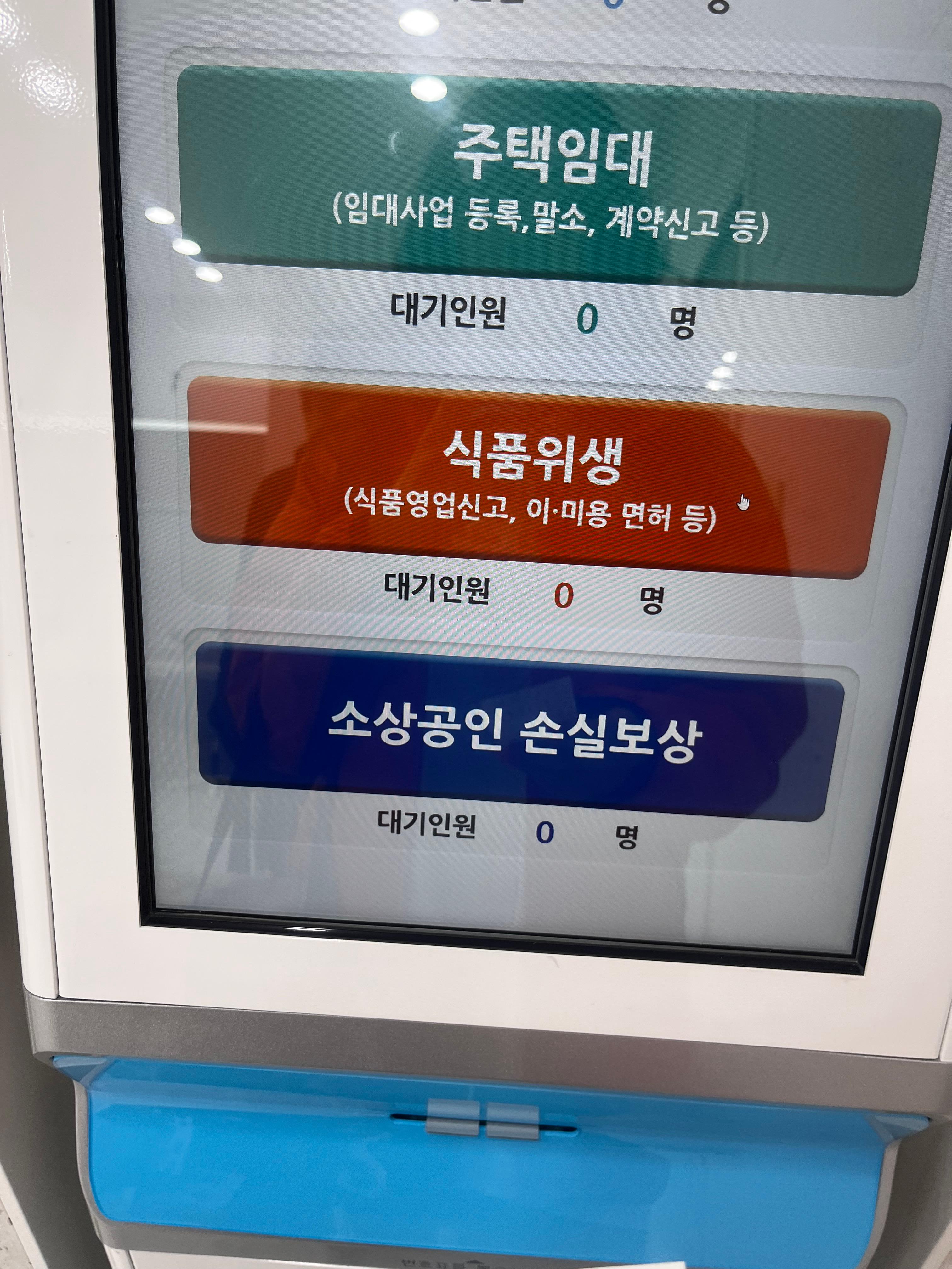 번호 뽑는 곳에서 식품위생민원 뽑고