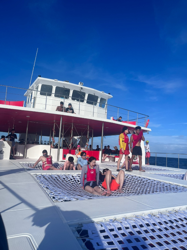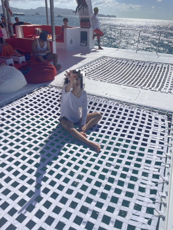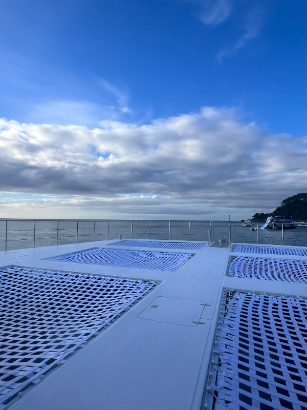 배의 후미에는 네트가 이렇게 있어서 언제든지 저기에 누워 휴식하거나 투어를 즐길수 있다.