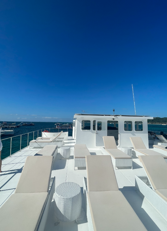 레드웨일 보트(라고 하기엔 너무큰 선박)는 최신 호핑용 선박이라 보기에도 넓고 깨끗해 보인다.