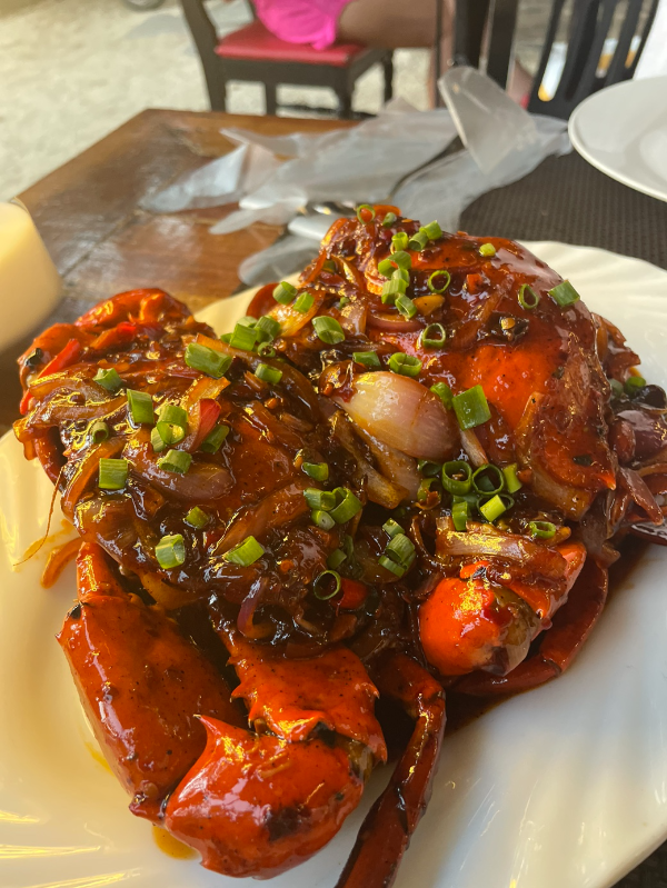 크랩과 새우는 아마도 바다향을 감추기 위해 진한 양념을 하는듯 보인다.
