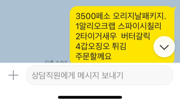예약 신청을 하면 사장님이 메뉴판을 보내준다.