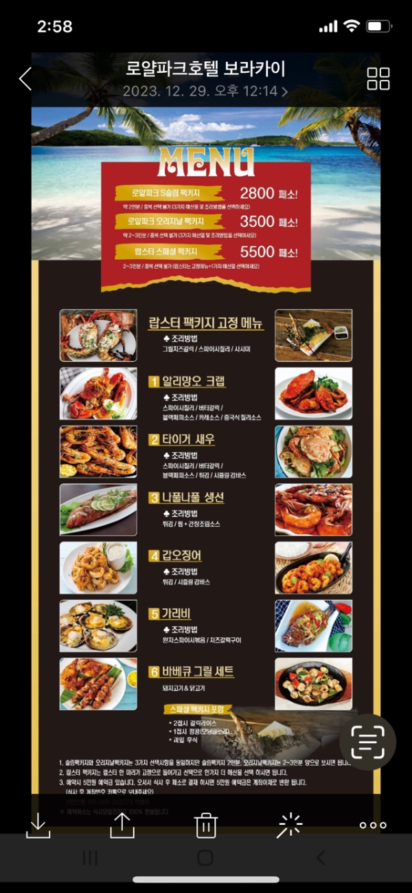 예약 신청을 하면 사장님이 메뉴판을 보내준다.