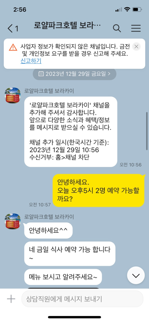 호텔사장님이 한국분이셔서 한국 카카오 톡으로 로얄파크호텔 찾아 친추한후에