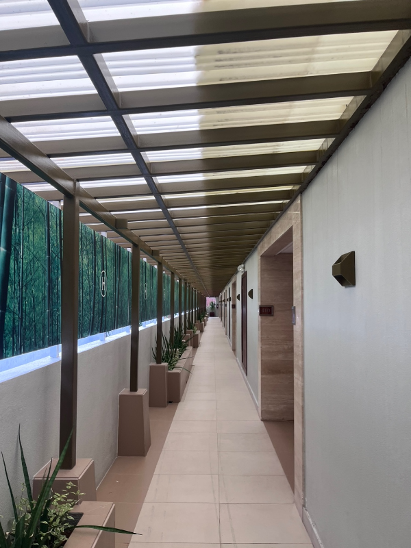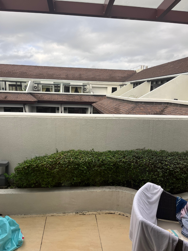 베란다에 벽이 있음 -> 즉 뷰가 건너편 지붕과 하늘밖에 안보임. 수영장 뷰를 기대했으나 망함.