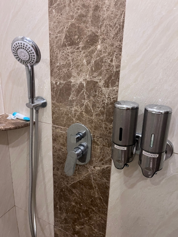 화장실 샤워부스 안의 샤워기가 벽에 달려 있어 불편하다는데 들고 사용하면 되서 우리는 크게 불편한점은 못느꼈다.