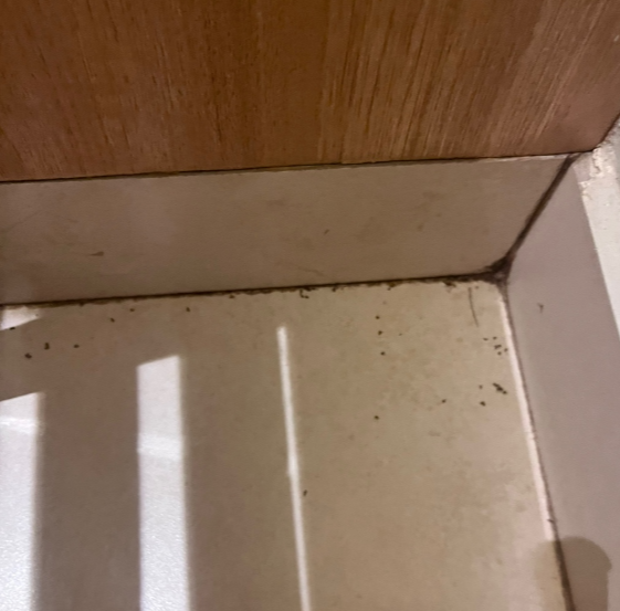 방 한쪽 구석에 개미 시체가 떼로 죽어있다.