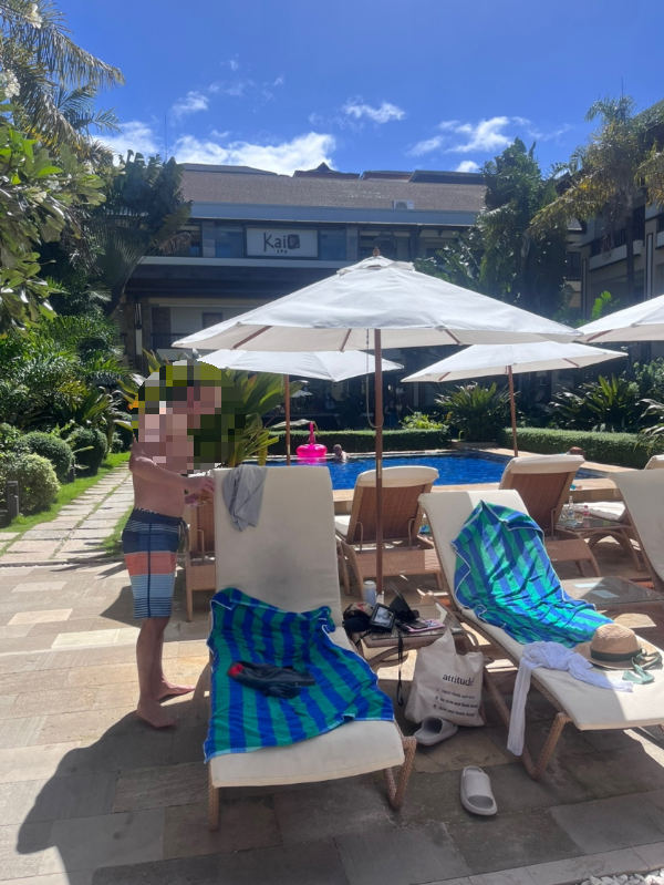 헤난은 수영장이 3곳 있는데 우리는 East wing에 묵은지라 방에서 가까운 가운데 수영장을 이용했다.