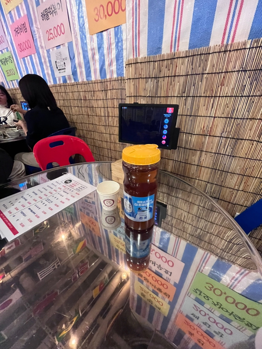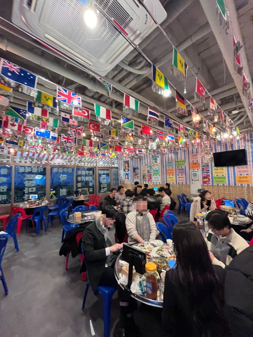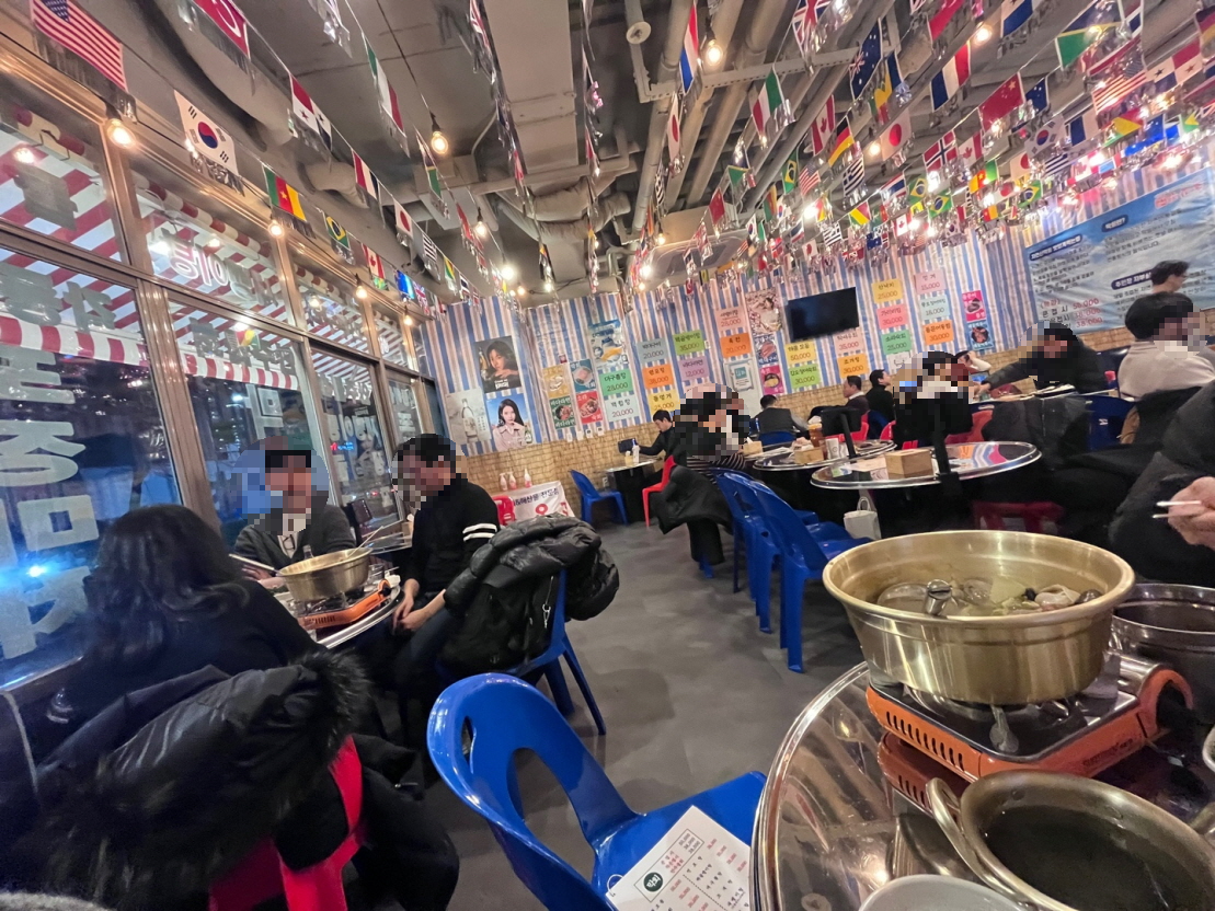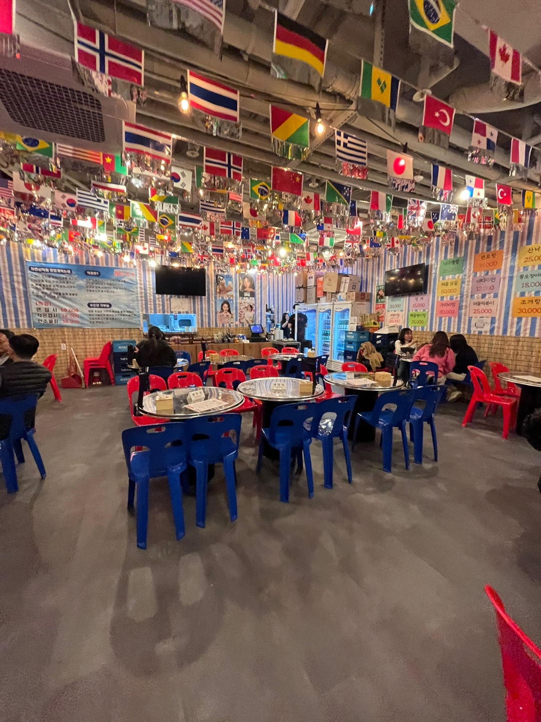 동그란 테이블과 플라스틱 의자만으로도 시끌벅적 포차같다.