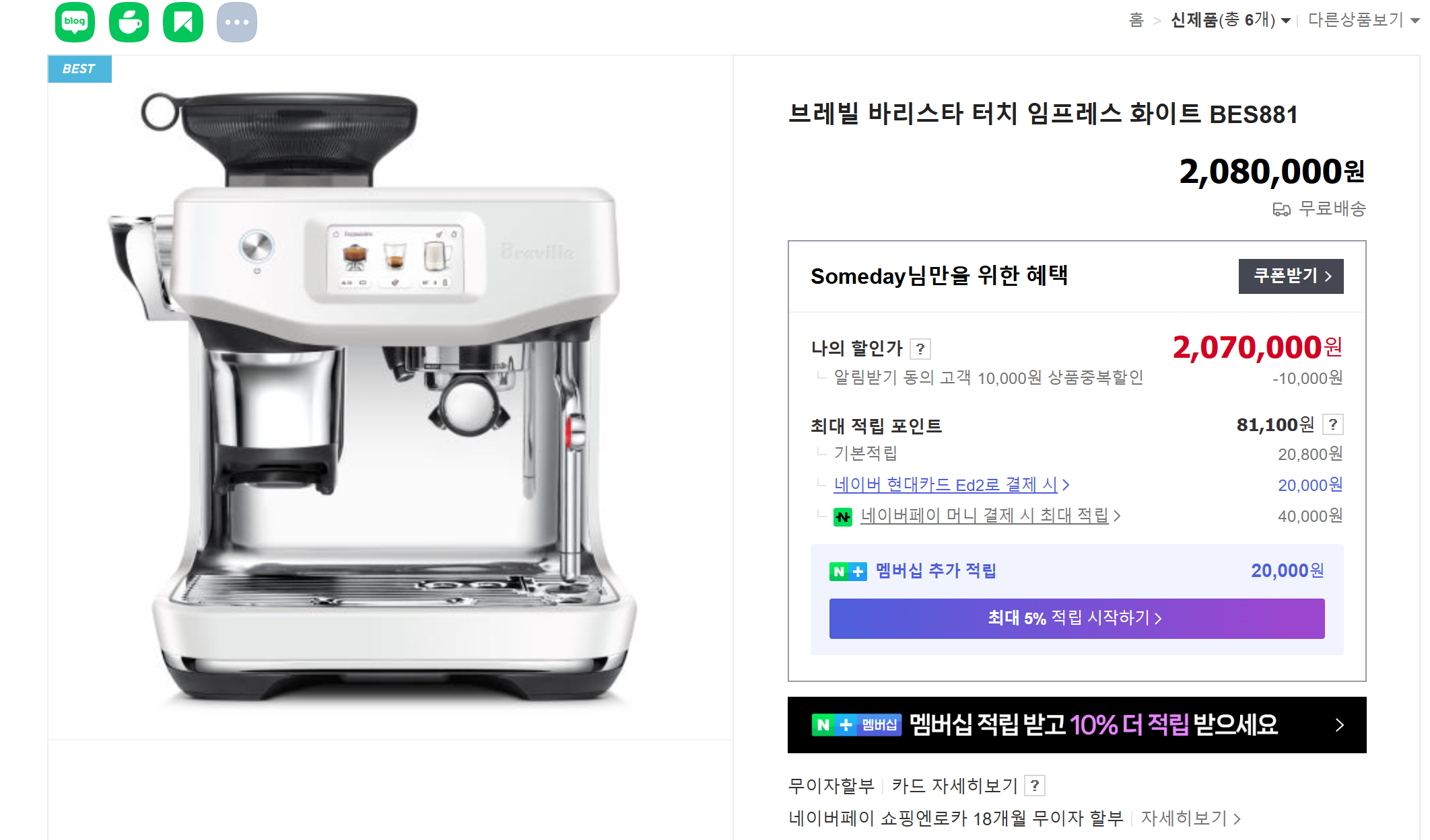 결국 돌고돌아 커피맛이 제일 좋은 브레빌로 다시돌아왔어요.