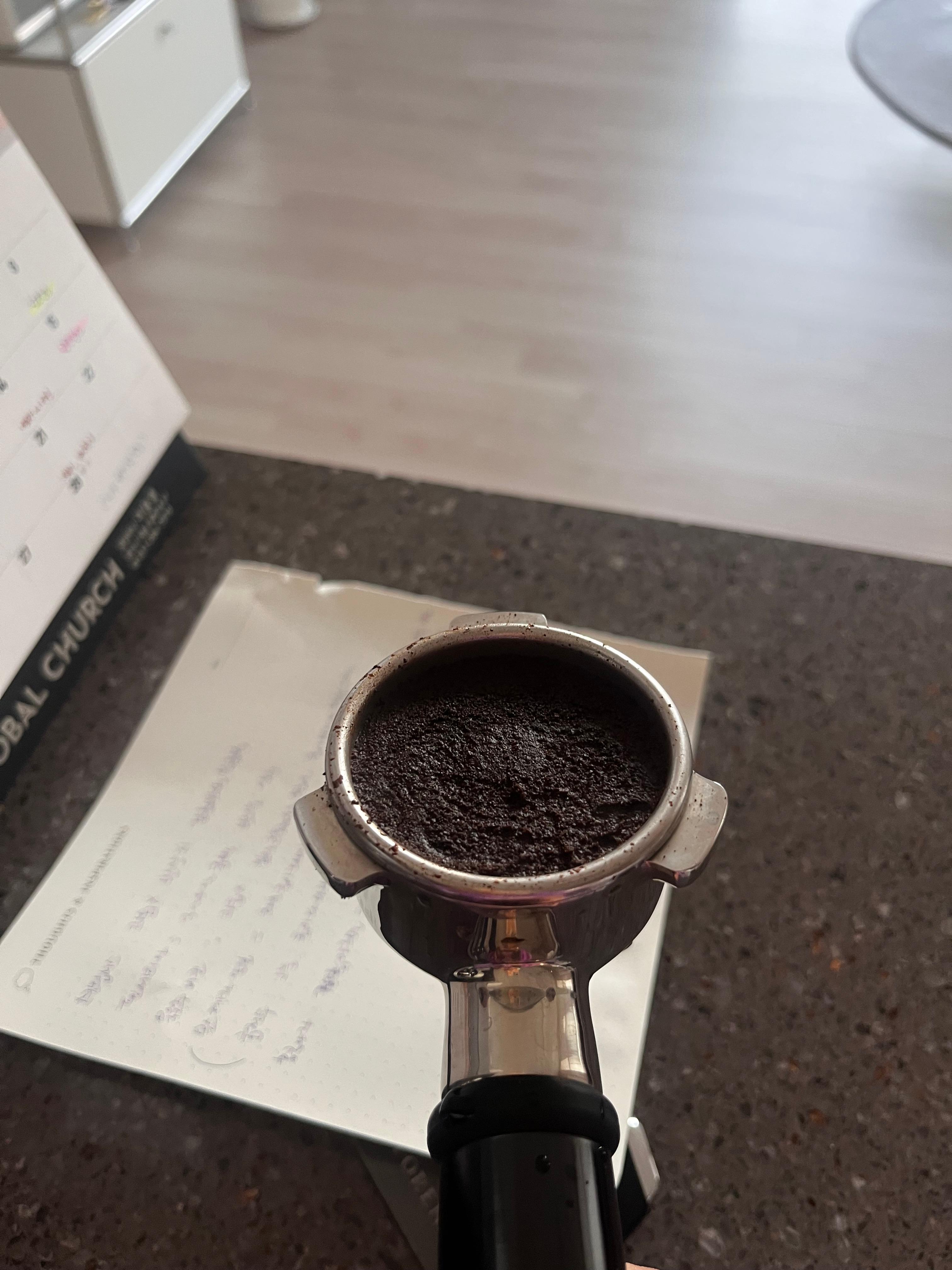 커피가 완전히 추출되지 않는지 제 실력이 모지란 것인지 물기가 많이 남아 있습니다.