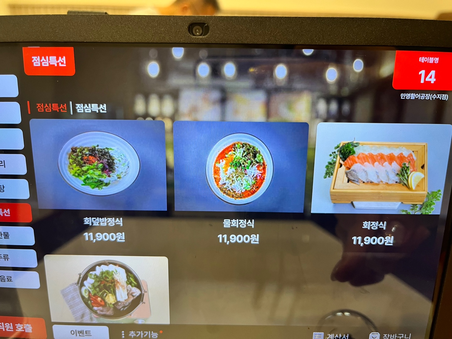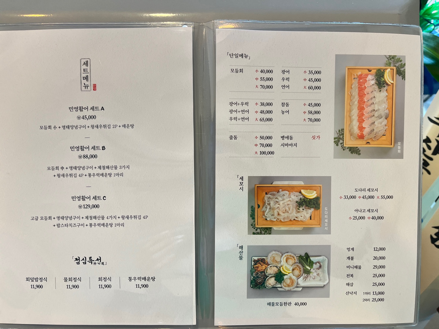 점심메뉴로 회덮밥 정식, 물회정식, 회정식 등이 저렴하다.