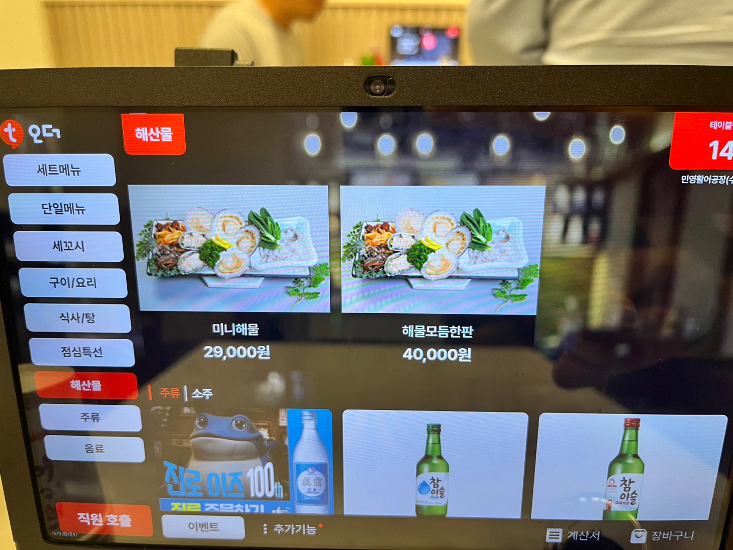 해산물 메뉴는 멍게 전복 산낙지 미니해물 등등을 판매하고 있다.