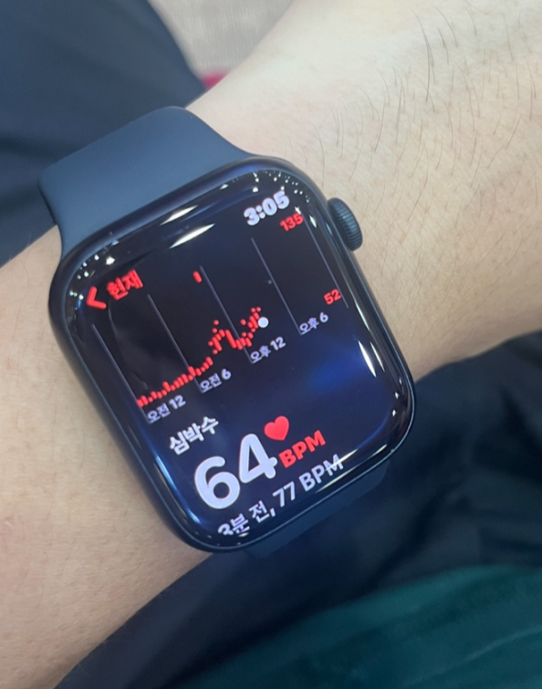 시술후 쭈욱 평균 60을 유지하던 심박이 와인한모금에 긴장했다.