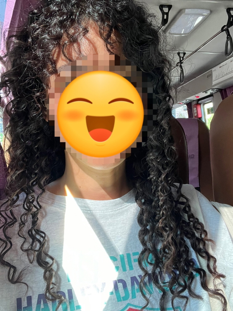 꼬불거리는 머리는 손으로 빗으면 흑인머리처럼 부스스해지는데 그것도 매력있다.