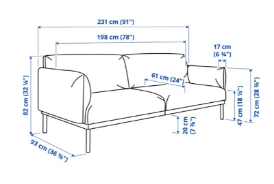 3인용 쇼파 가로사이즈가 231센치, 깊이는 93센치이다.