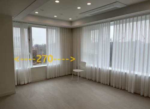 저기 저 작은 가로공간에 쇼파를 놓고 싶다. 너비가 270센치이다.