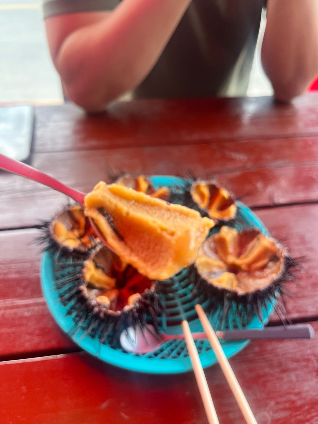 성게알은 수저로 퍼먹으면 된다.