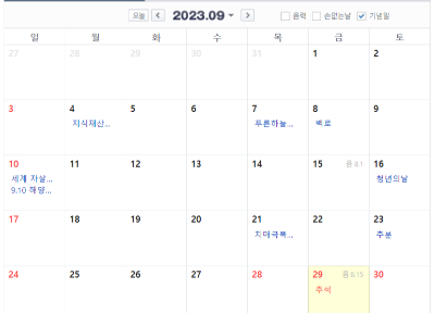 8월을 이틀 남겨두고 9월 달력을 열어본다.