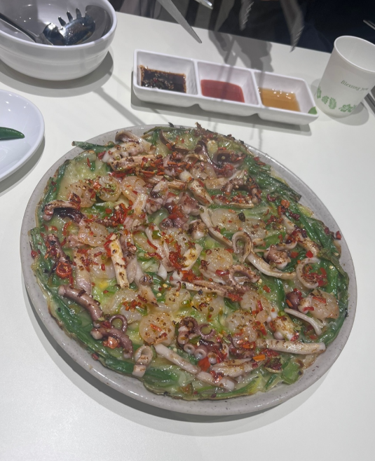 기름진맛이나 기름이 쩔지 않고 야채와 고추의 맛이 잘 어우러졌다.