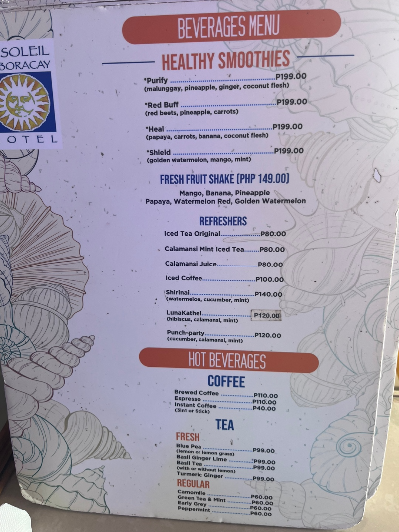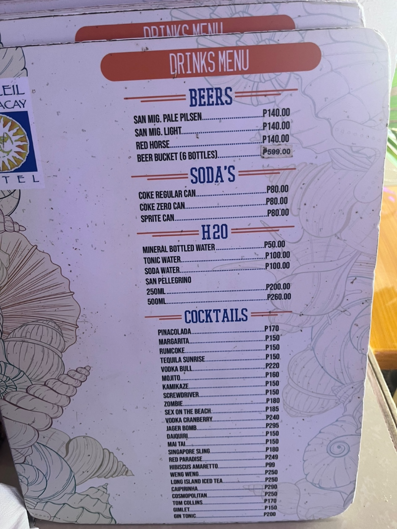 보라카이 메뉴판에는 그림이 없다.