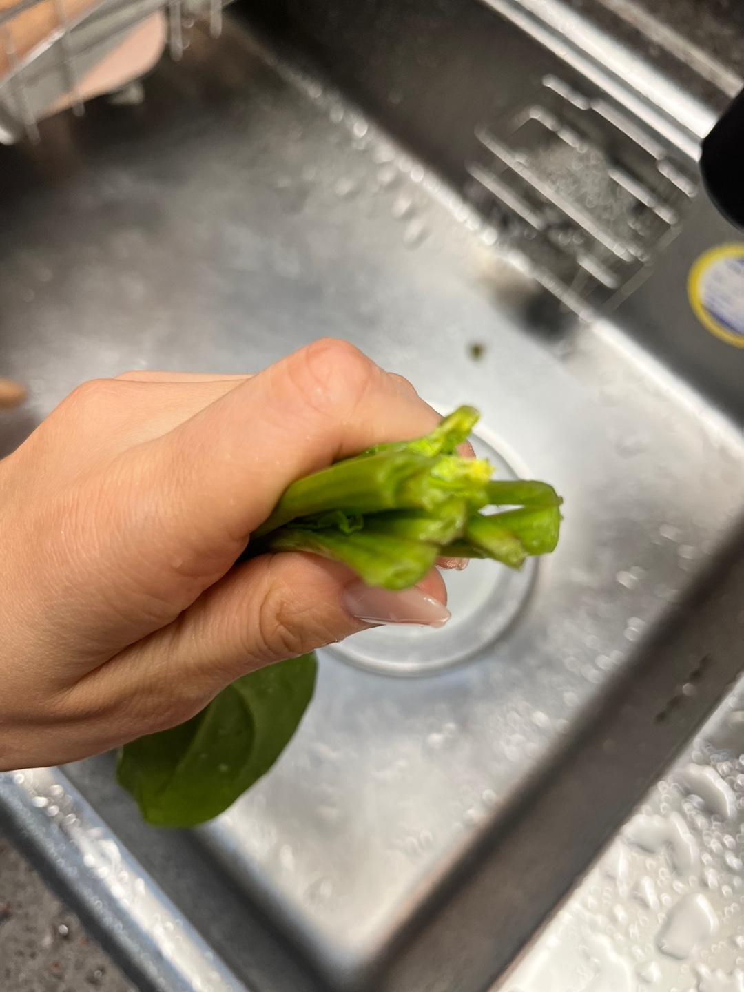 알배추가 익을동안 시금치 뿌리최대한 남기고 잘라냄(먹기편하려고)