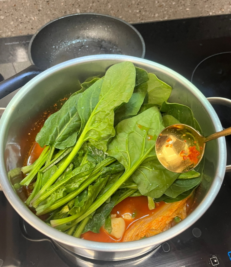 배추랑 시금치 넣기전에는 많아보이나 끓고 나면 어디로 갔는지 다 없어진다.