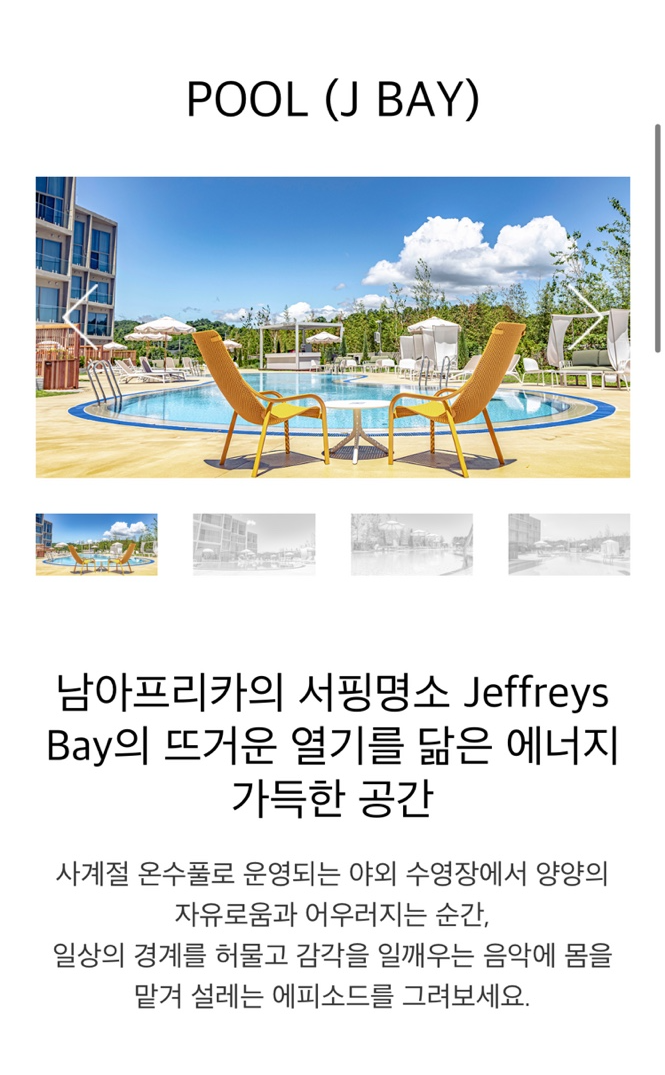 코랄로 바이 조선에서는 야외 온수풀을 운영한다. 10-4월까지 는 32~36도로 운영하고 5~9월까지는 29~32도로 운영한다 투숙객은 무료로 이용할수 있다.