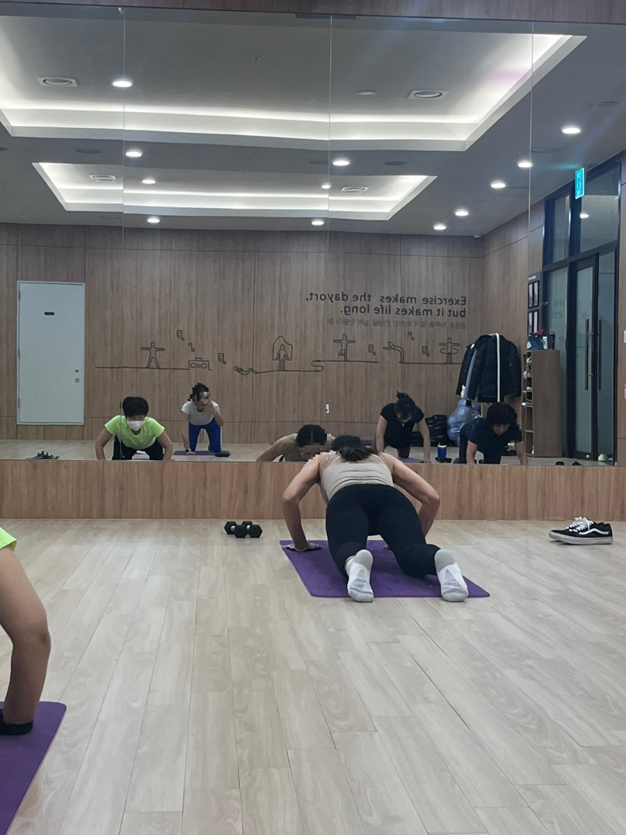 첫날 수업을 들을때보다 다른 회원님들의 바디라인이 정리되는것이 눈에 띄게 보인다.