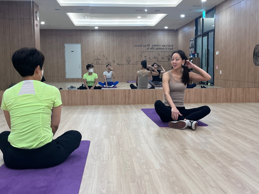 첫날 수업을 들을때보다 다른 회원님들의 바디라인이 정리되는것이 눈에 띄게 보인다.